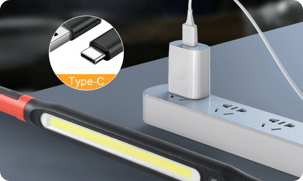 Type-C Rechargeable with LED Battery Indicator (flashes while charging; shows “100” when full)